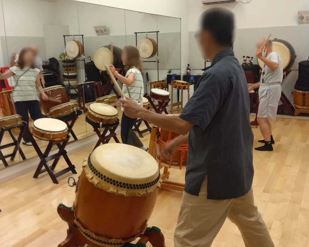 音楽スタジオで和太鼓を体験したり